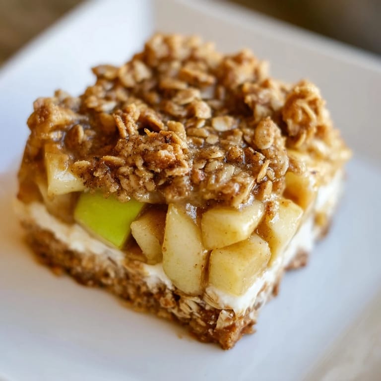 Save Cream cheese, apple, and spiced oat layers combine for a comforting dessert bar with creamy, crunchy, and warmly spiced flavors in every bite.