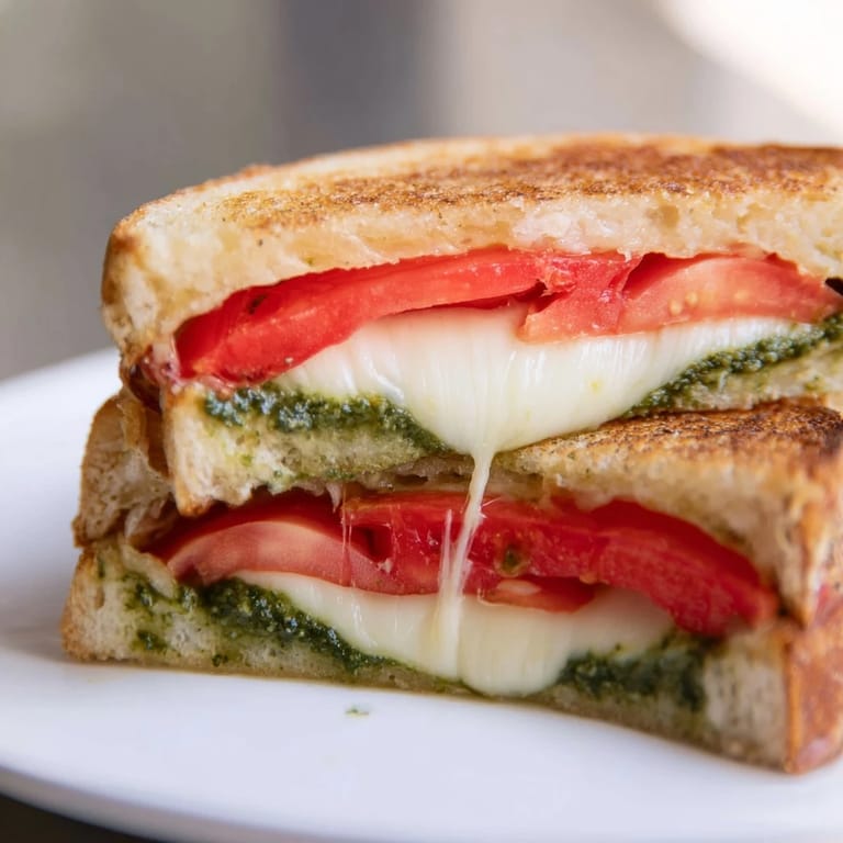 Save The smell of butter browning in a hot skillet has a way of stopping time. I was standing at the stove one summer afternoon, staring at a pile of tomatoes from the garden and a container of pesto I'd impulse-bought at the farmers market. I had bread, I had cheese, and suddenly the idea hit me: why not turn a Caprese salad into a grilled cheese? That first bite, with the mozzarella still stretchy and the tomato warm and sweet, made me wonder why I'd ever settled for plain cheddar.