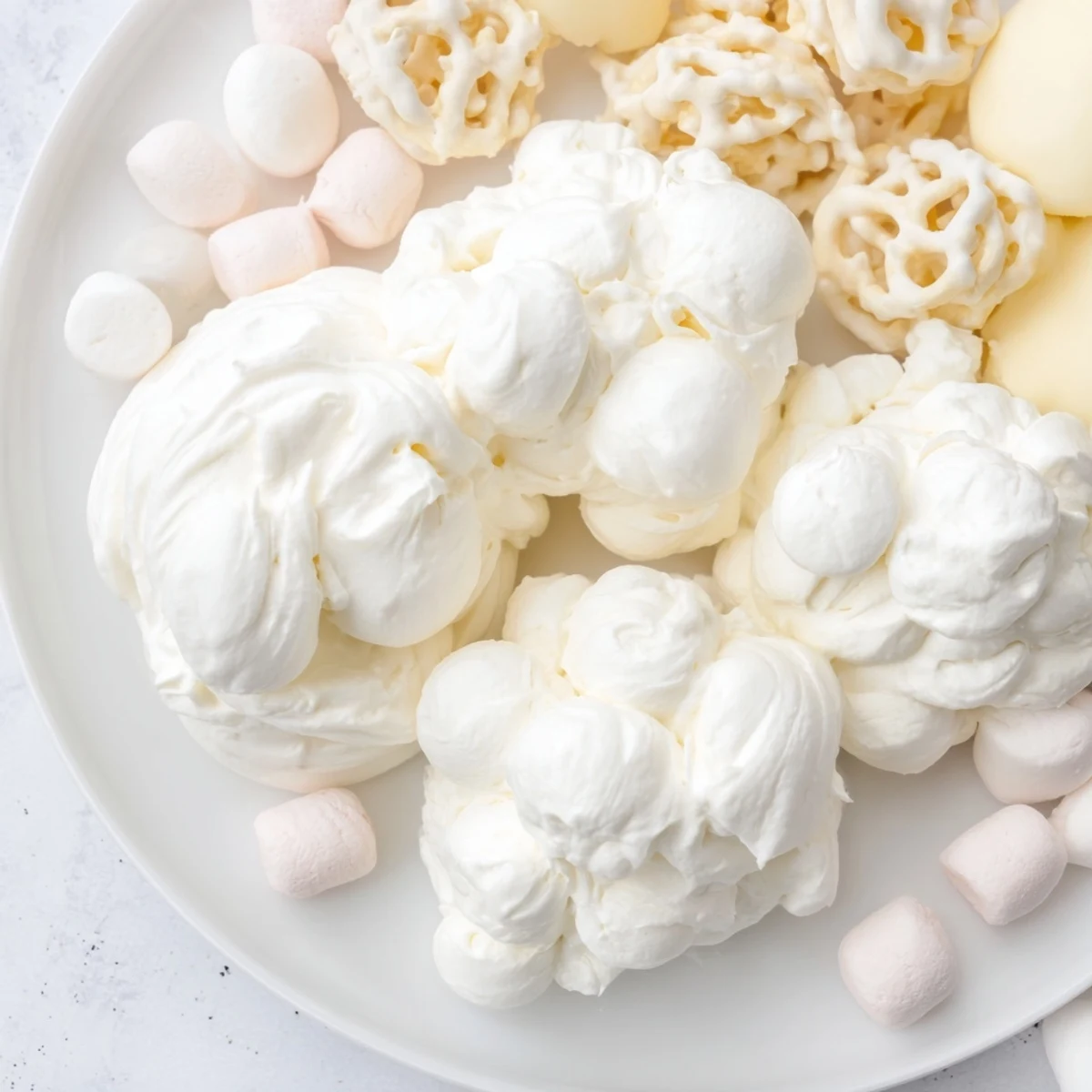 - Scatter mini marshmallows and white chocolate-covered pretzels near the clouds for a whimsical touch.