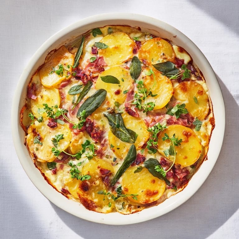 Save A cozy, comforting baked platter featuring tender potatoes, creamy cheese, savory ham, and a hint of herbs—perfect for sharing on a chilly day.