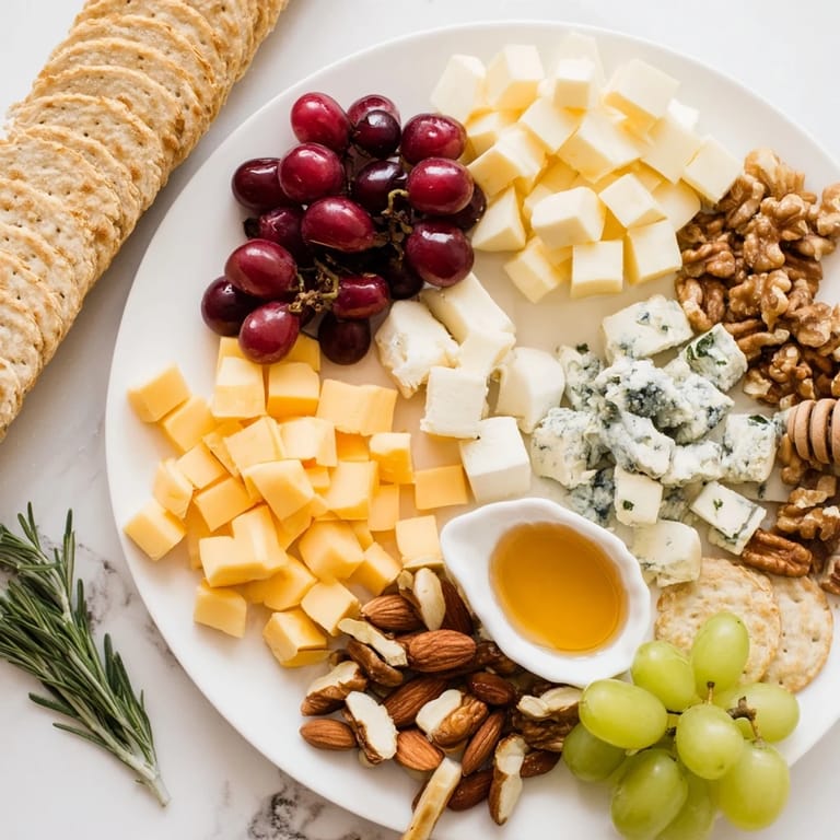 This cheese board is a favorite at our gatherings because it combines sweet and savory flavors in a visually stunning way.