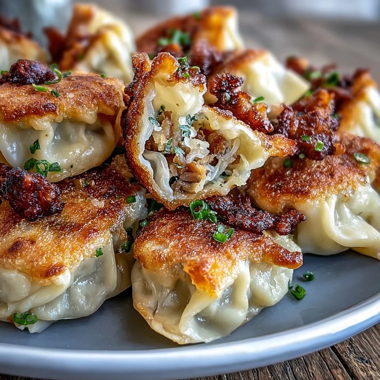 Save My roommate burst through the door one rainy Tuesday with a bag of dumpling wrappers and a wild idea: what if we smashed them while they cooked? I thought she was joking until she actually did it, pressing down with the spatula like she was sealing an envelope. The bottoms turned shatteringly crisp, the edges frilly and golden, and suddenly dumplings weren't just dumplings anymore. We ate all sixteen standing at the stove, dipping and laughing, fingers shiny with chili oil.
