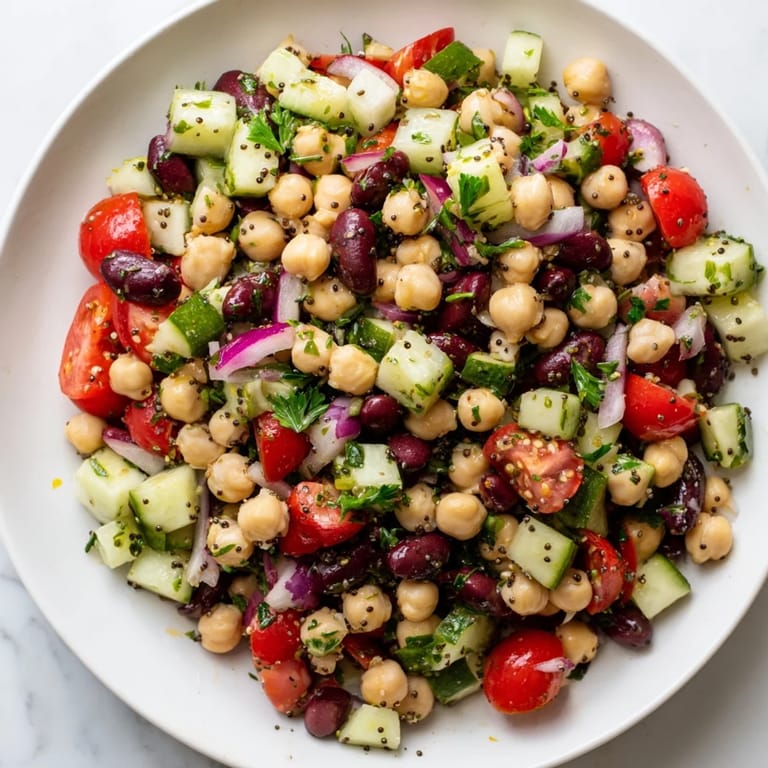 Save I discovered this salad almost by accident one Tuesday when my pantry was overflowing with canned beans and I refused to let them sit unused another week. What started as a practical way to use up ingredients turned into something I now make constantly, drawn to how the chia seeds plump up and create these little pockets of texture you don't expect in a salad. There's something deeply satisfying about combining three different beans and knowing you're getting genuine nutrition without any fussing.