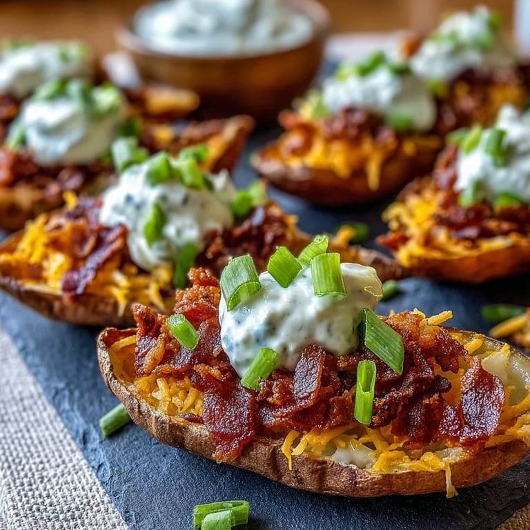 Save The way the kitchen smelled the first time I baked sweet potato skins with bacon and cheddar still makes me grin—salty, smoky, sweet, all mixed together with that toasty cheese scent. I discovered this recipe by accident one holiday when I had too many sweet potatoes on hand and not enough oven space for a casserole. Cutting into a pile of hot, just-baked potatoes and hearing the little crunch from their skins as I scooped was a moment that just felt right. Every step brought out the color and flavors, brightening up an ordinary evening snack into something worthy of sharing. This dish always amazes me with how simple ingredients make something absolutely irresistible.