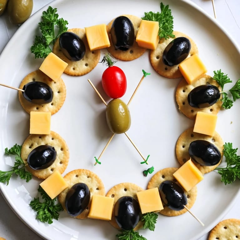 What really made this platter special was watching my nieces arrange the olives on each cracker, taking turns calling out the clock numbers like they were setting the stage for something important. By 11:45 PM, the platter was already half-demolished, and we were all gathered around it with our champagne flutes, each person pointing out which "number" they were going to eat next. That's when I realized this wasn't just a festive appetizer—it was the thing that brought everyone together in those final minutes of anticipation.