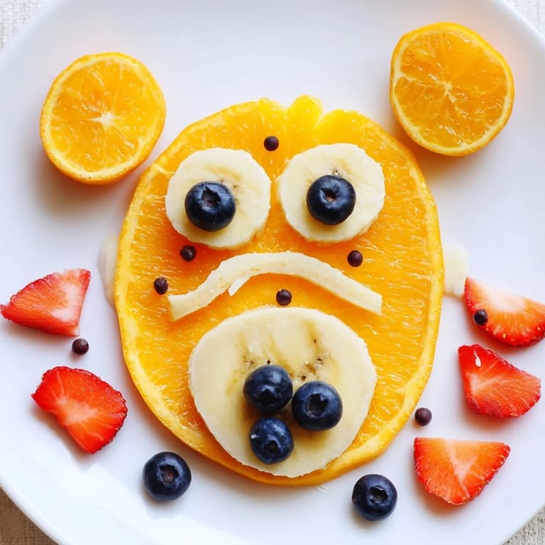 Save A whimsical and healthy fruit platter featuring an adorable bear face made from fresh orange slices, perfect for kids parties, brunches, or as a fun snack.