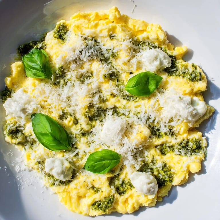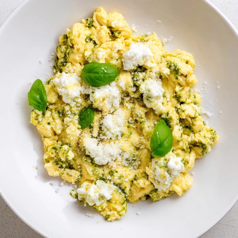 Save There's something about the combination of eggs and pesto that just clicked for me one lazy Sunday morning when I was tired of my usual scramble routine. I'd had cottage cheese sitting in the fridge and a half-empty jar of basil pesto, and on a whim I decided to throw them together into my eggs. The result was so unexpectedly luxurious—creamy, vibrant, and ready in under ten minutes—that it became my go-to when I wanted something that felt special without the fuss.