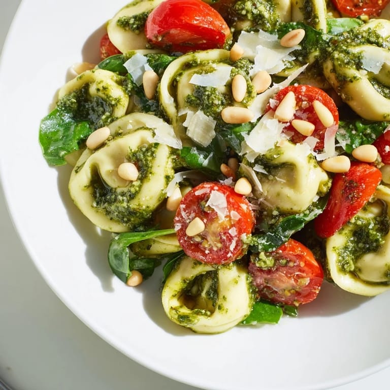 Save My neighbor knocked on my door one Saturday morning holding a bag of tortellini she'd impulse-bought and had no idea what to do with. We stood in my kitchen, staring into the fridge, and spotted leftover pesto from Wednesday's pizza night. Twenty minutes later, we were eating this salad straight from the bowl, laughing at how something so simple could taste so bright and satisfying. It's been my go-to ever since for last-minute gatherings and lazy weekends when I want something fresh without the fuss.