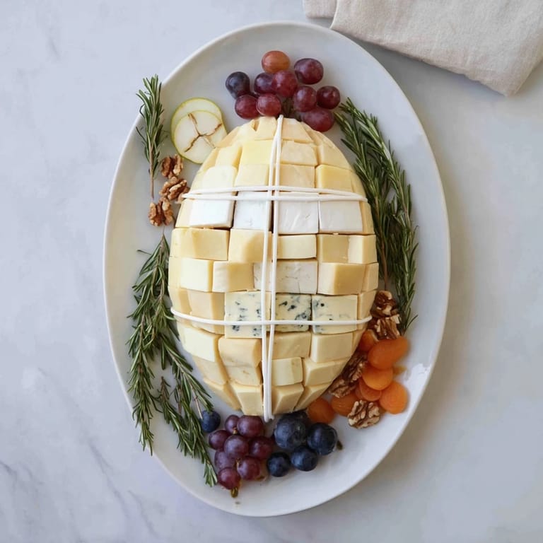 Save A playful and elegant cheese board arranged in the shape of a rugby ball—perfect for sports gatherings and cheese lovers alike. This creative platter features a selection of French cheeses, fresh fruit, nuts, and charcuterie, beautifully presented for maximum impact.