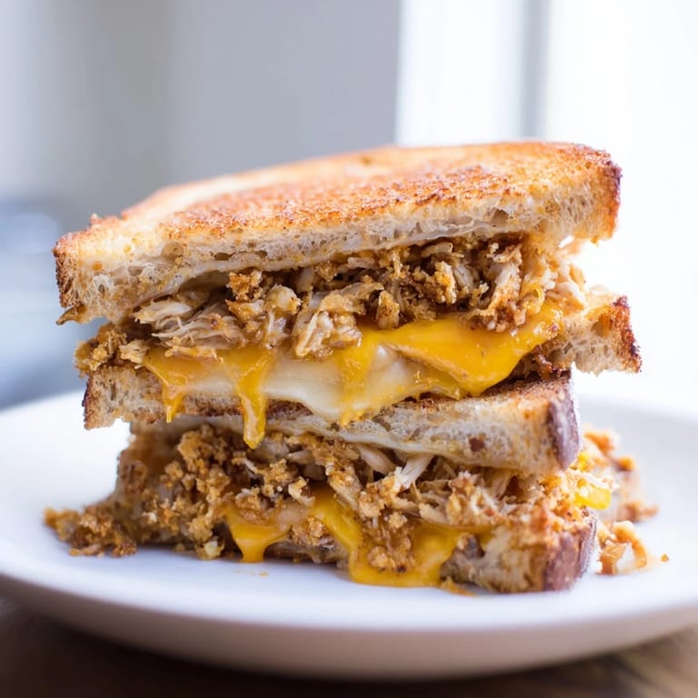Save There's something about the sizzle of butter hitting a hot skillet that makes you feel like you've got your act together in the kitchen, even if you don't. I discovered this sandwich on a lazy Sunday afternoon when I had leftover rotisserie chicken, a craving for something crispy, and no patience for anything complicated. The combination of spicy shredded chicken, melted cheese, and that golden, crunchy bread pulled straight from the griddle became my go-to move for impressing people without actually trying.