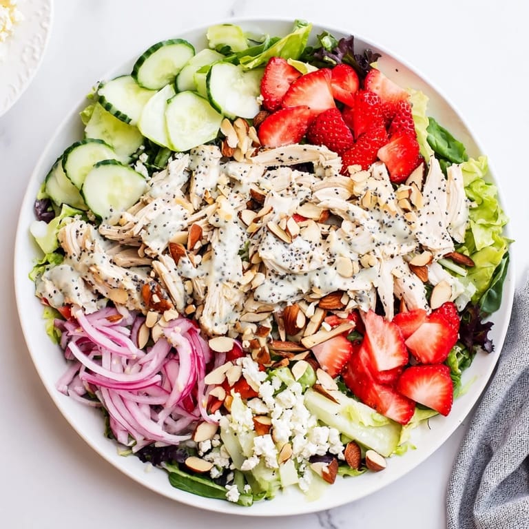 Last summer I served this at a backyard birthday party and watched my cousin pick out every strawberry first. She admitted she only ate salads because her wife made her but this one actually made her happy. The colors look so stunning piled high that people assume it took hours to prepare.